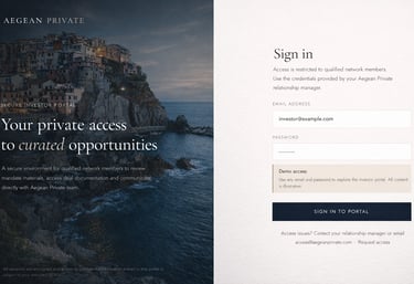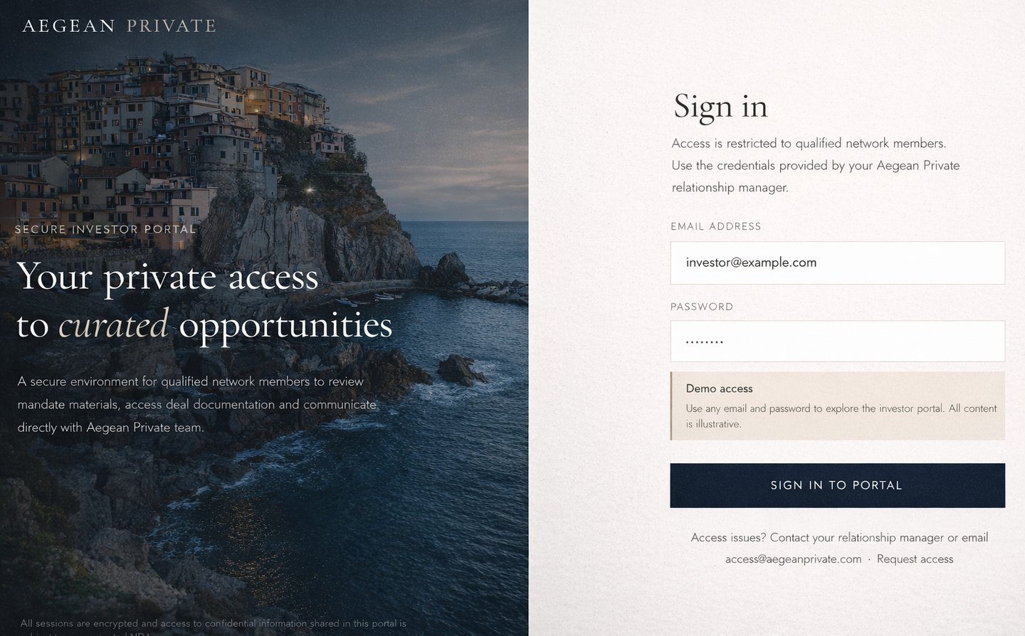 A private investment access platform connecting select investors with curated real asset opportunities across the Mediterranean and international markets.